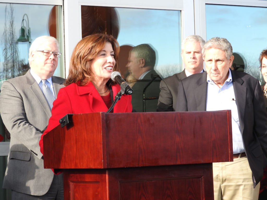 New York State’s Lieutenant Governor, Kathy Hochul, addresses guests and media attending a ceremony last Friday. (Photo by Wendy Post)