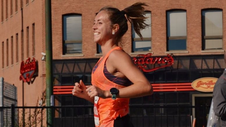 Pictured is Alexis Fairbanks, a 2009 OFA graduate, running in the 2017 Chicago Marathon. She recently participated in the 2018 Boston Marathon on April 16, where she finished in 3:08, and which placed her at 223 among women. Fairbanks is co-founder of the nonprofit, The Lane 9 Project, a community of active women and activists who speak out about women’s health, nutrition, fertility and running. (Provided photo)