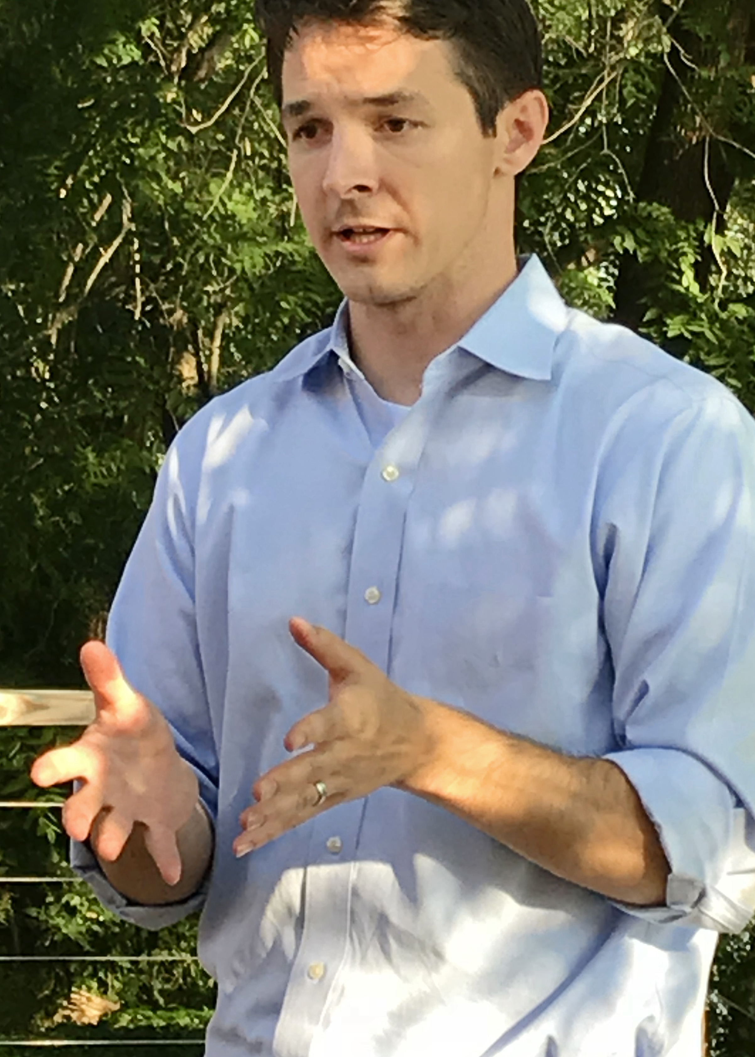 Recently at MJ's, located on Fifth Avenue in Owego, Eric Misbach, associate director of Community Solar Operations at Nexamp, shared details about a community shared solar subion program available to all who live in Tioga County and elsewhere in NYSEG Zone C. To learn more, call 1-800-945-5124. Pictured, Eric Misbach addresses the guests in attendance. Photo credit: Gerry Wiley.
