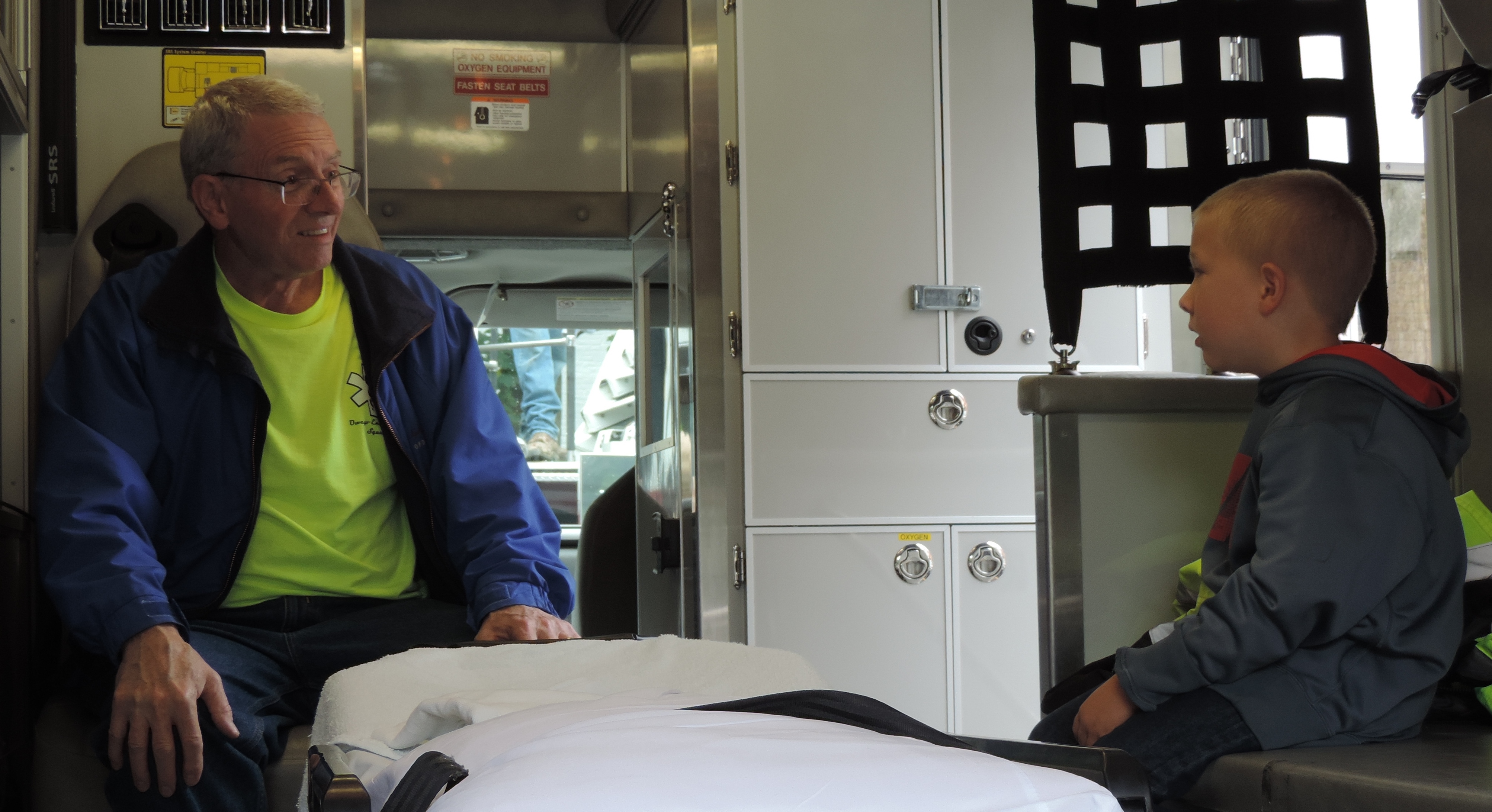 A member of the Owego Emergency Squad talks to a young boy about working on the ambulance crew during the St. Pat's Fall Festival on Sept. 22. (Photo by JoAnn R. Walter)