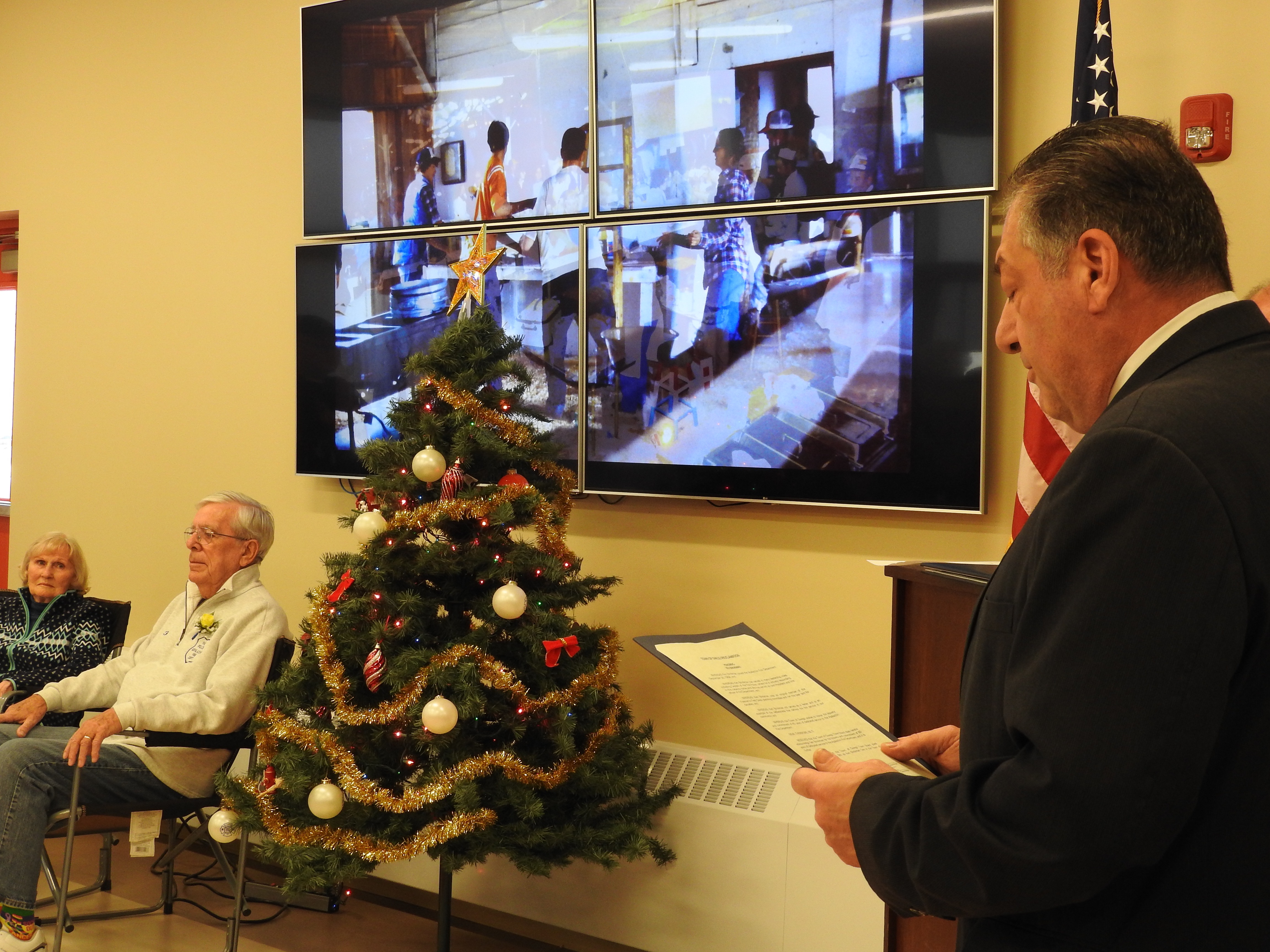 Don Castellucci, Town of Owego supervisor, reads a signed proclamation from the town that declared Dec. 9, 2018 as Ken Brinkman Day in the Town of Owego. (Photo by Wendy Post)