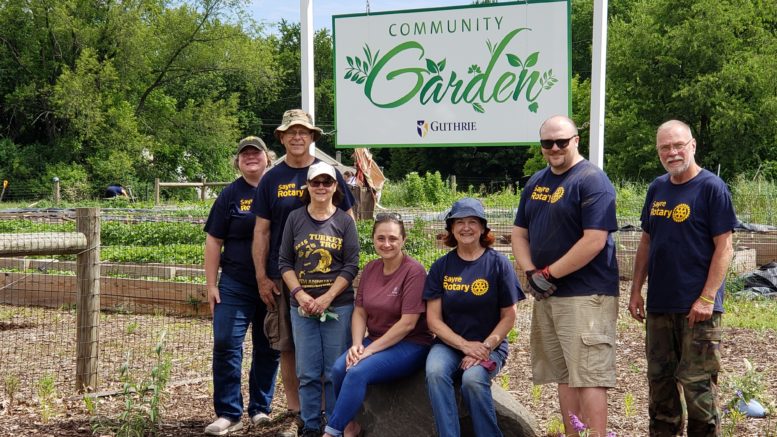 For the second time this year, members of Sayre Rotary held a work bee at the Guthrie Gardens as one of their many Community service projects. Weeds were pulled and dug, unused raised beds were dismantled and everyone had a great time “playing in the dirt”.