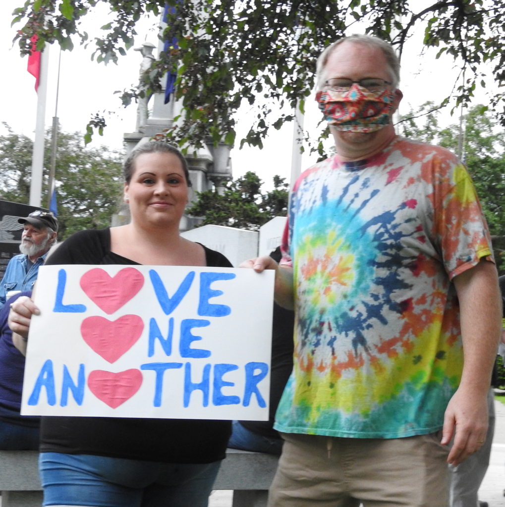 A table was set up in remembrance of George Floyd for Thursday night’s peace vigil in Owego. (Photo by Wendy Post)
