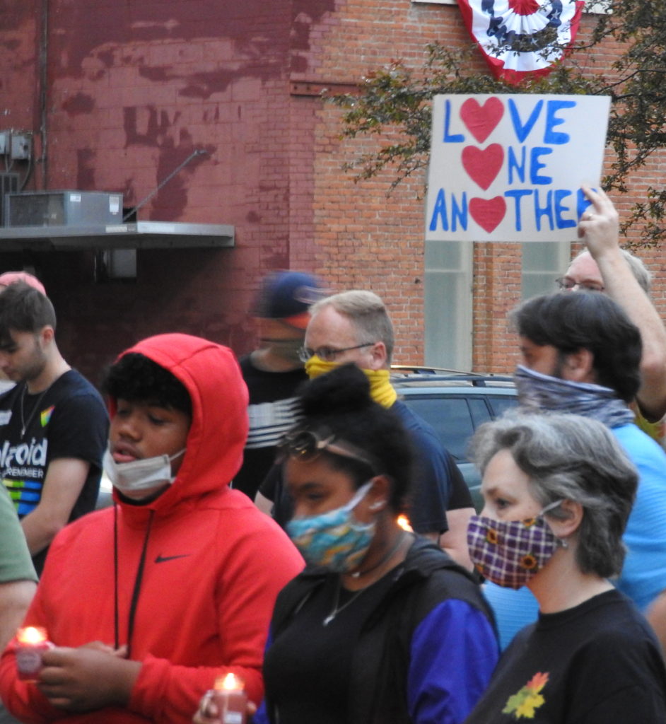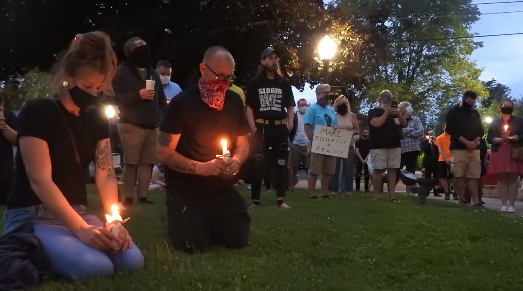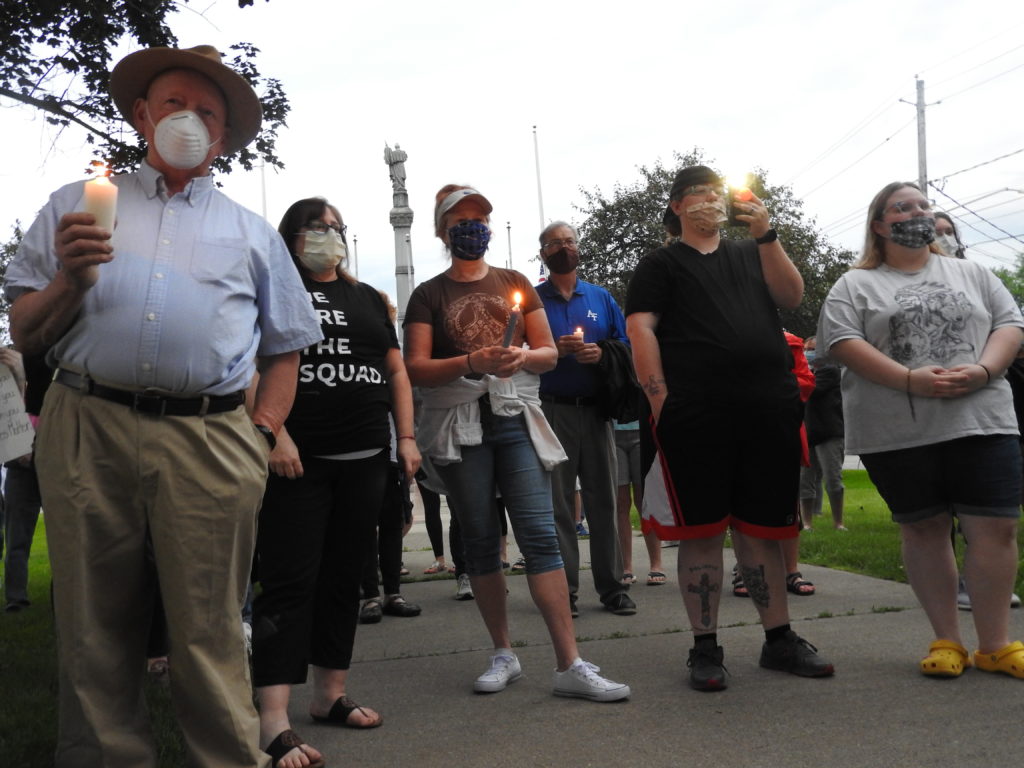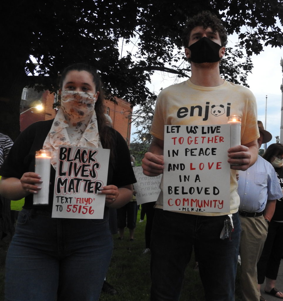 Guests gather at the Courthouse Square in Owego for a candlelight vigil remembering George Floyd on Thursday. (Photo by Wendy Post)