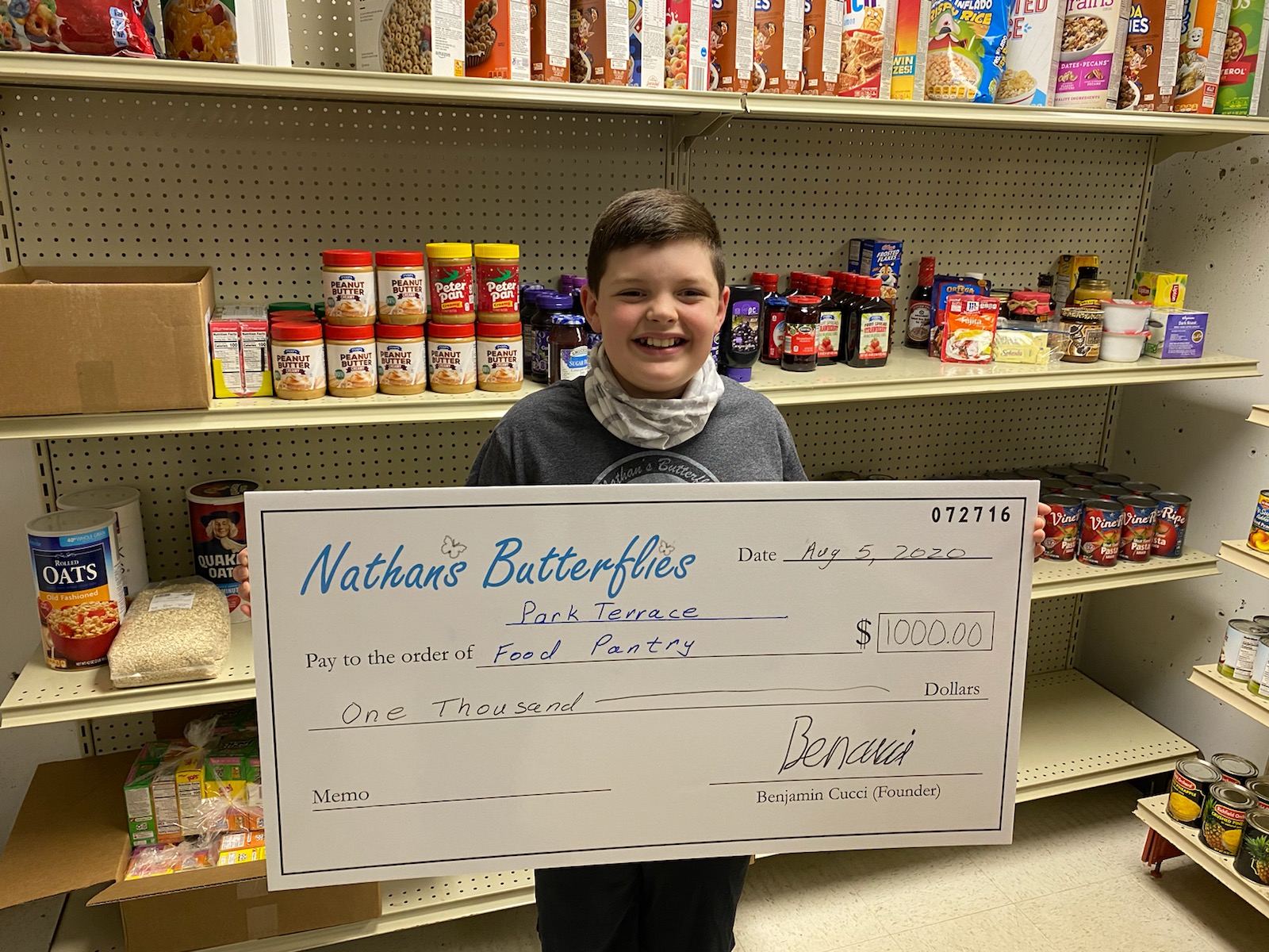 The Park Terrace Community Food Pantry in Apalachin recently received a special visit from Nathan’s Butterflies. The founder, Ben Cucci, his mother, his younger brother, and a few board members stopped by the Pantry to make a donation of $1,000 to help with the increased need for food during the pandemic.