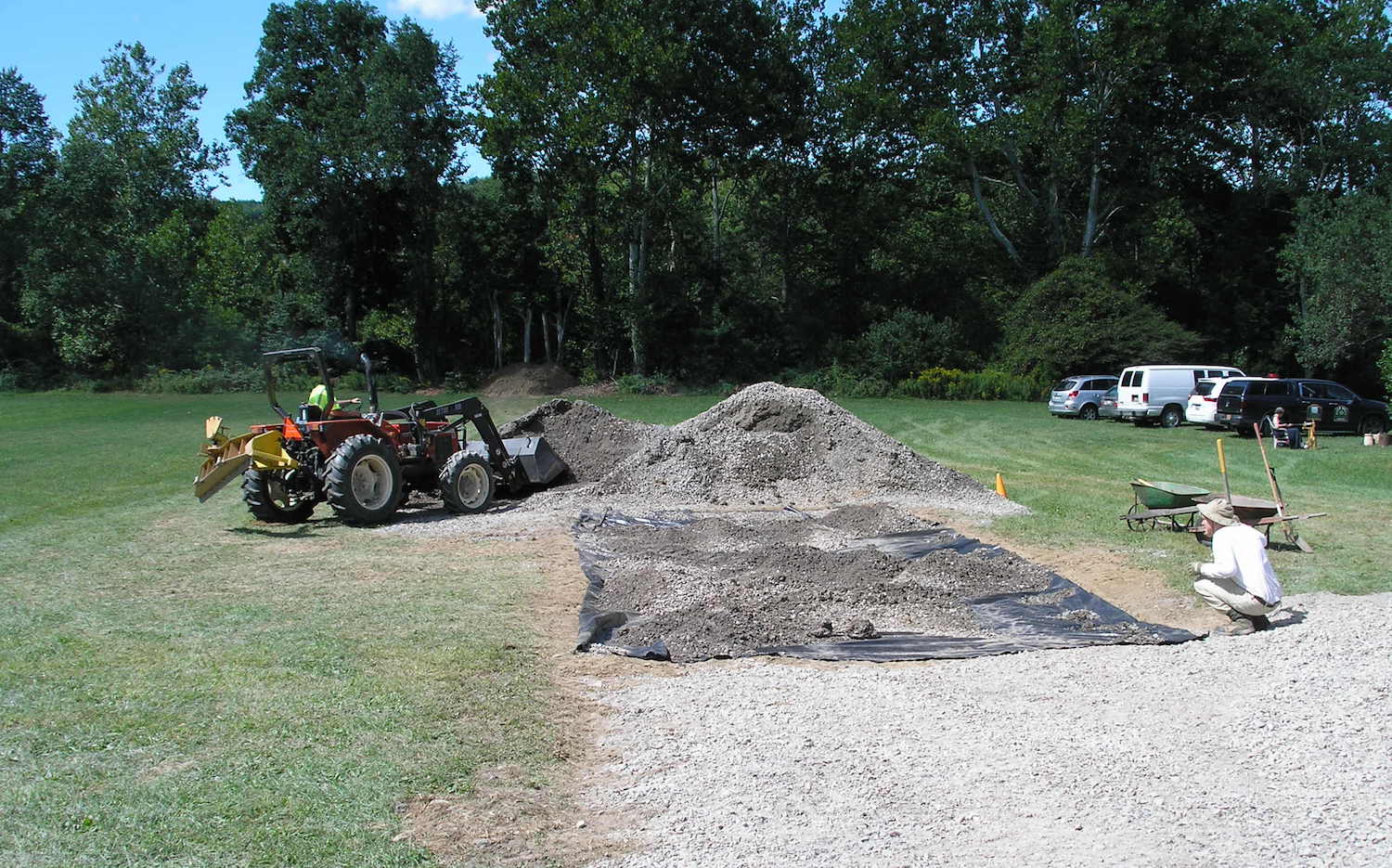 This was a joint effort for both organizations. For the Society’s two entrances, 4-inches of sod was taken up, road fabric was put down and gravel placed on top.