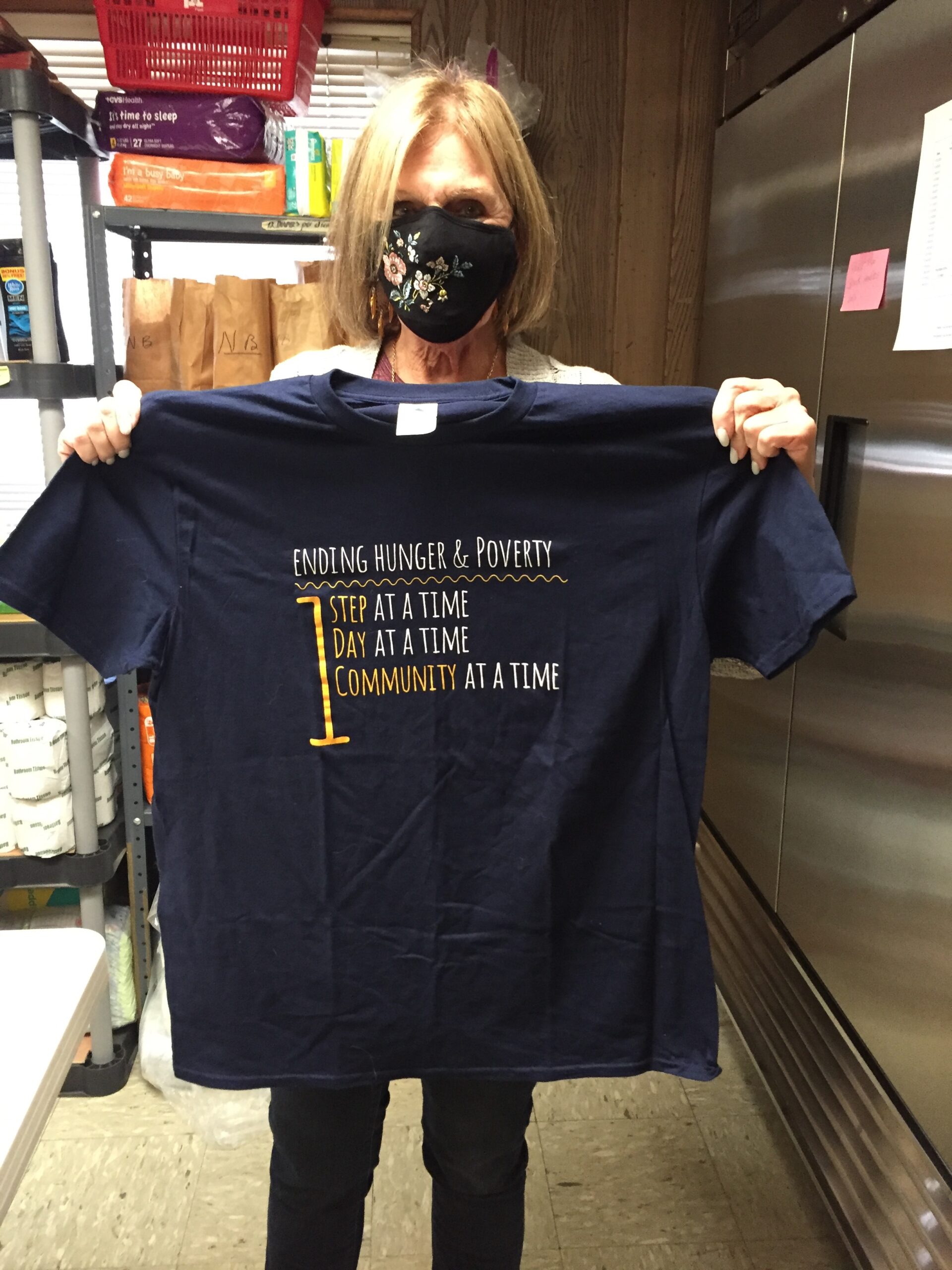 Pat Howe shows a CROP Walk T-shirt she received. Provided photo.