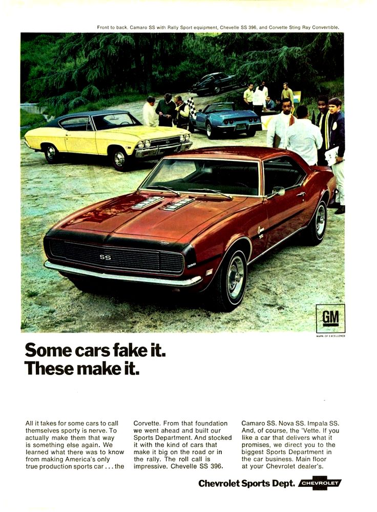 In 1968, the Camaro SS, Chevelle SS and Nova SS all offered big block 396 V8s in 325,350 and 375 horse versions. (Compliments Chevrolet.)