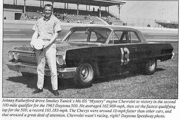 Although General Motors dropped out of officially sponsoring race cars in January of 1963, this photo with cutline appeared in many newspapers and called into question how serious GM was in halting its racing programs. (Compliments Daytona International Speedway)