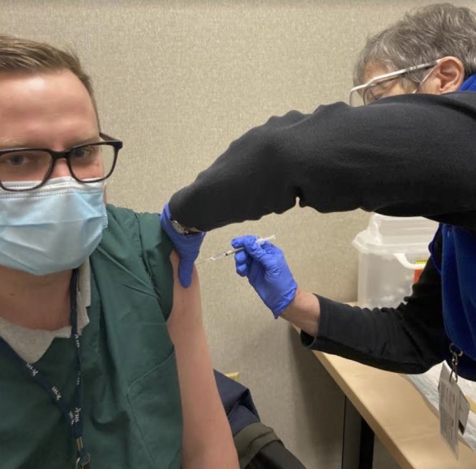 Lourdes and UHS administer COVID-19 vaccines to frontline workersDr. Zach Jones receives a vaccine. Provided photo.