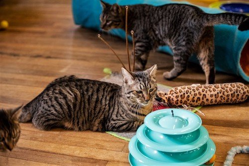 Pictured are cats enjoying playtime at You Too Animal Rescue in Towanda, Pa. As a result of the pandemic, and where people are looking for companionship, pet adoptions have increased. Provided photo.
