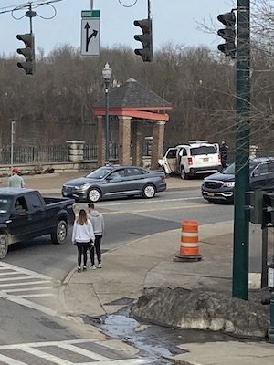 On Tuesday afternoon, crews worked to clear an accident scene on Front Street in Owego, and at the end of the Court Street Bridge. Provided photo.
