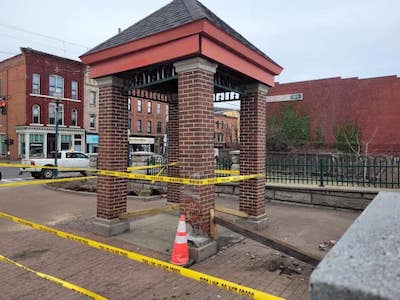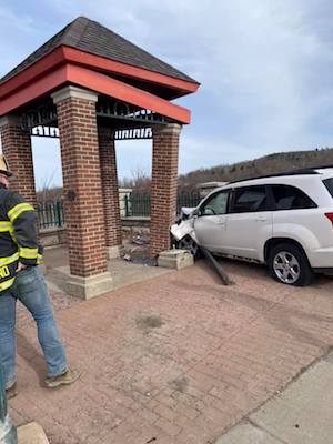 On Tuesday afternoon, at approximately 4:30 p.m., an unidentified male suffered a medical problem that caused him to lose control of his vehicle, drive over a concrete curb, and then strike the brick decorative pillar, or folly, on the Front Street end of the Court Street Bridge in Owego.