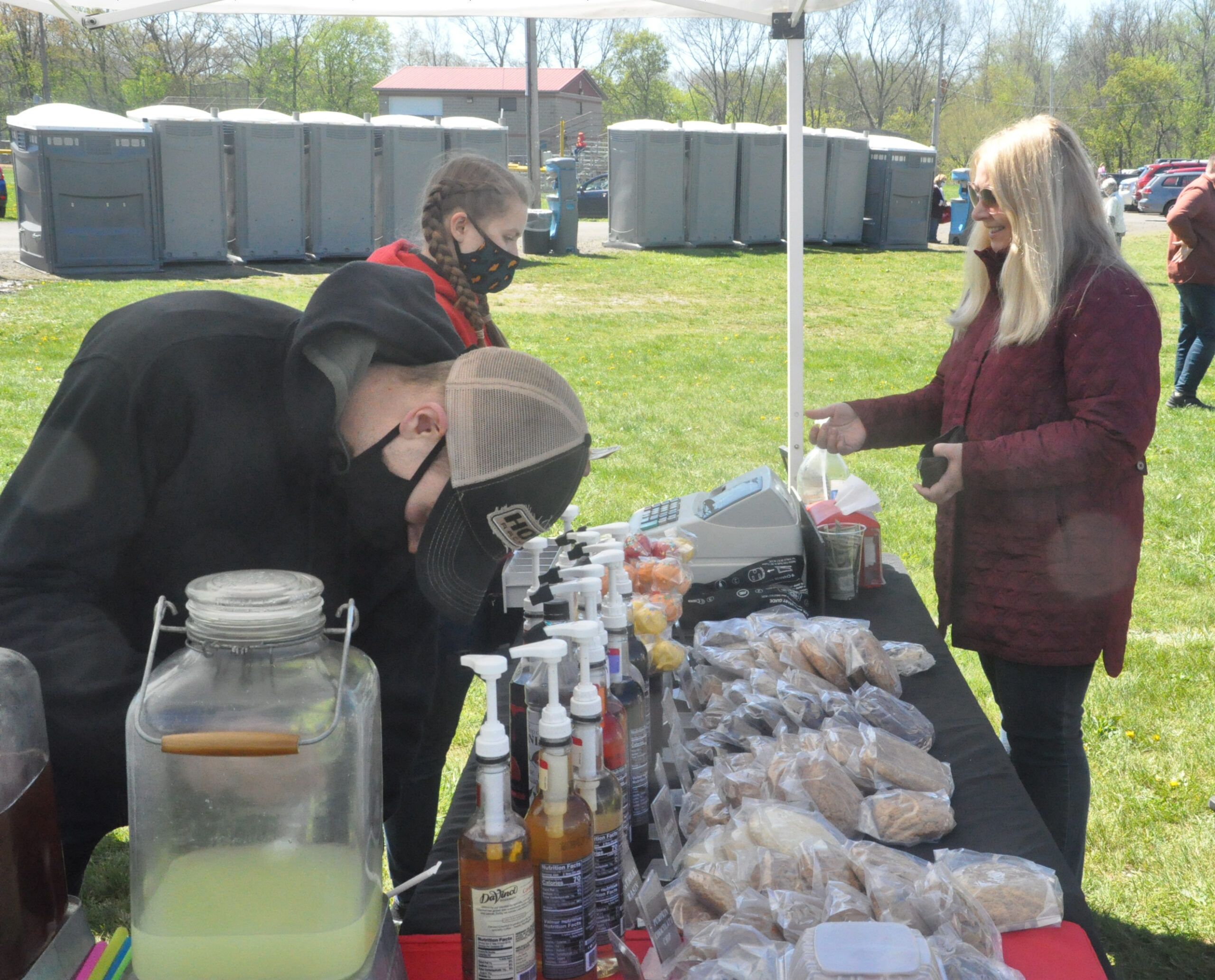 Suzanne Kostishak stops by the Celebrations Black Diamond Cafe booth. (Photo contributed by Matt Hicks, Editor, The Daily and Sunday Review)