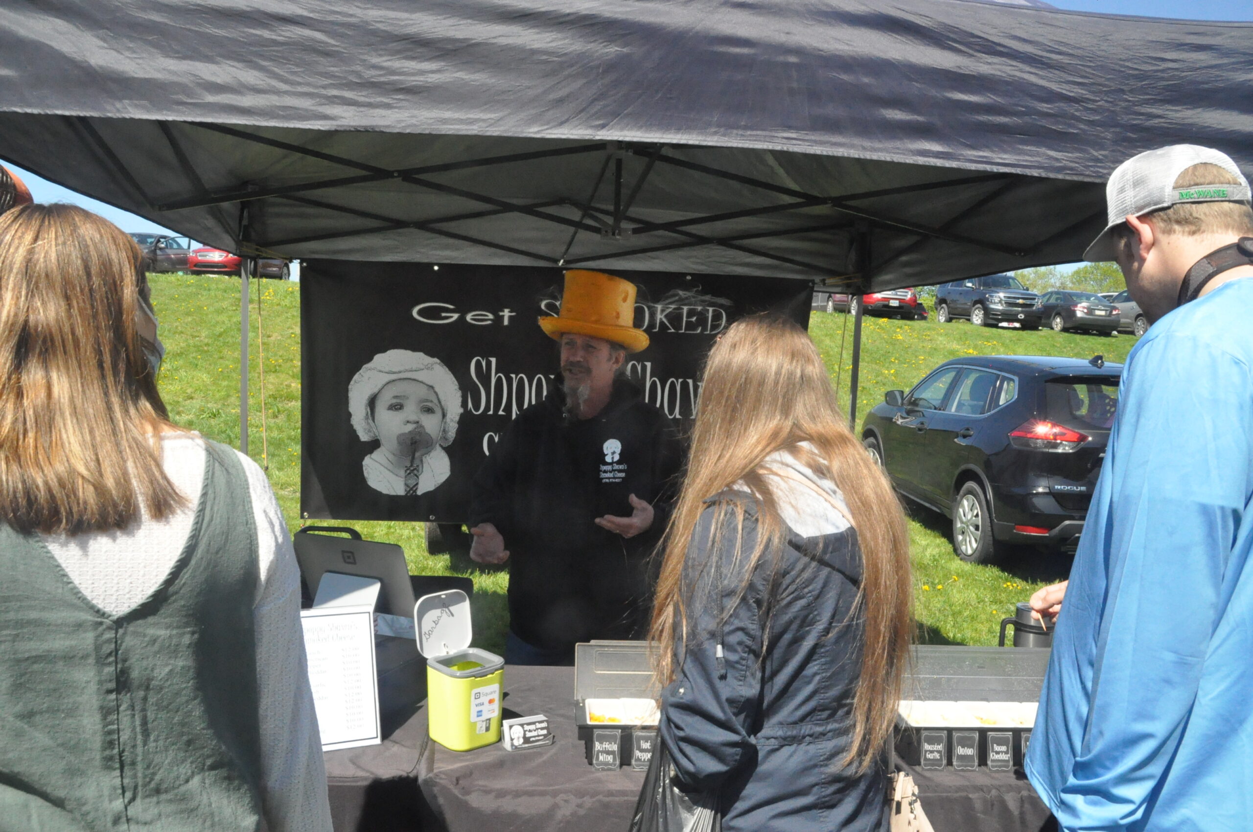 At the Shpoppy Shawn’s Shmoked Cheese booth, Shawn Mankovich – sporting a cheese hat – offered samples such as bacon ranch and roasted garlic cheese before people were able to pick and purchase their favorites.