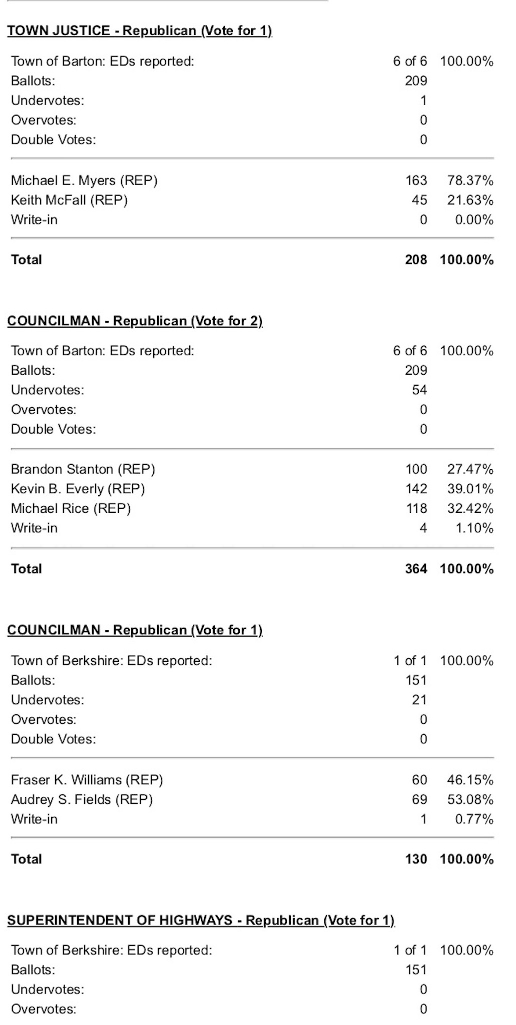 Here are the total results from Tioga County’s BOE, and we will have more in this weekend’s print edition of The Owego Pennysaver Press.