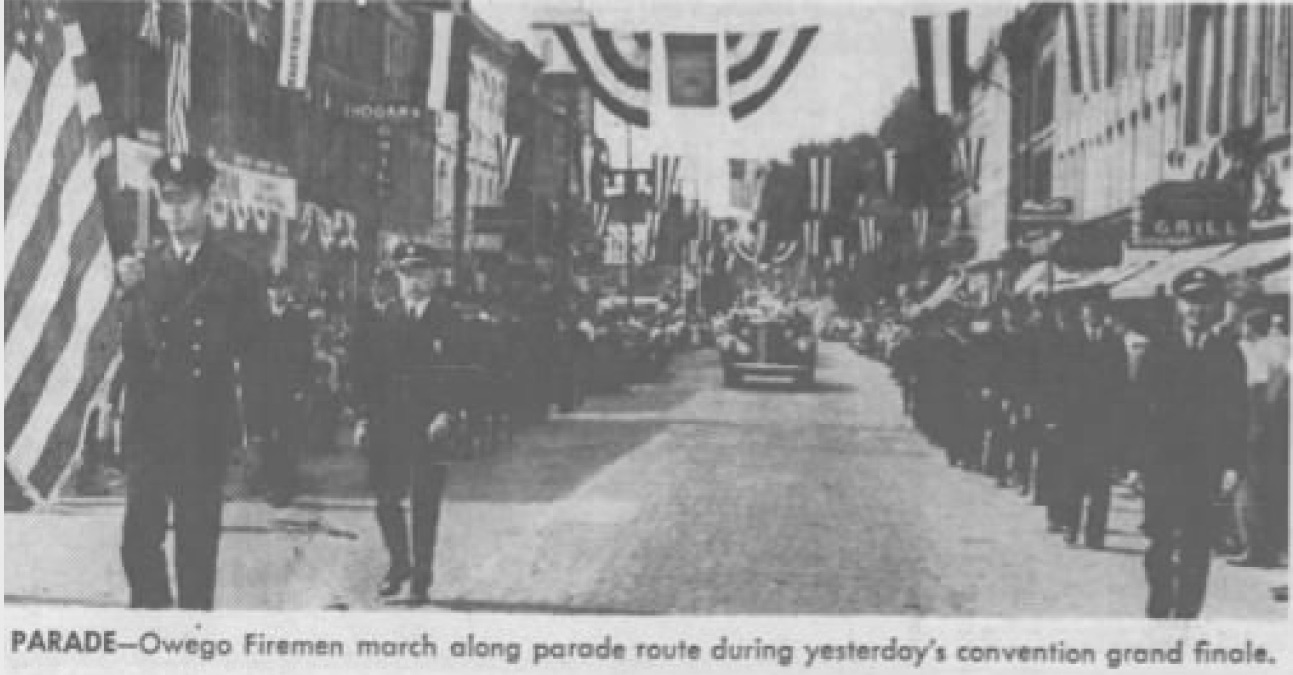 Called the most successful convention since its founding, the 1934 convention saw 10,000 people attend the parade with over 50 fire departments and drum and bugle corps participating. Additional drum and bugle corps contests were held at Marvin Park with the Cortland Legion as the winner. Sherburne Fire Department won the hose races on lower Front Street.