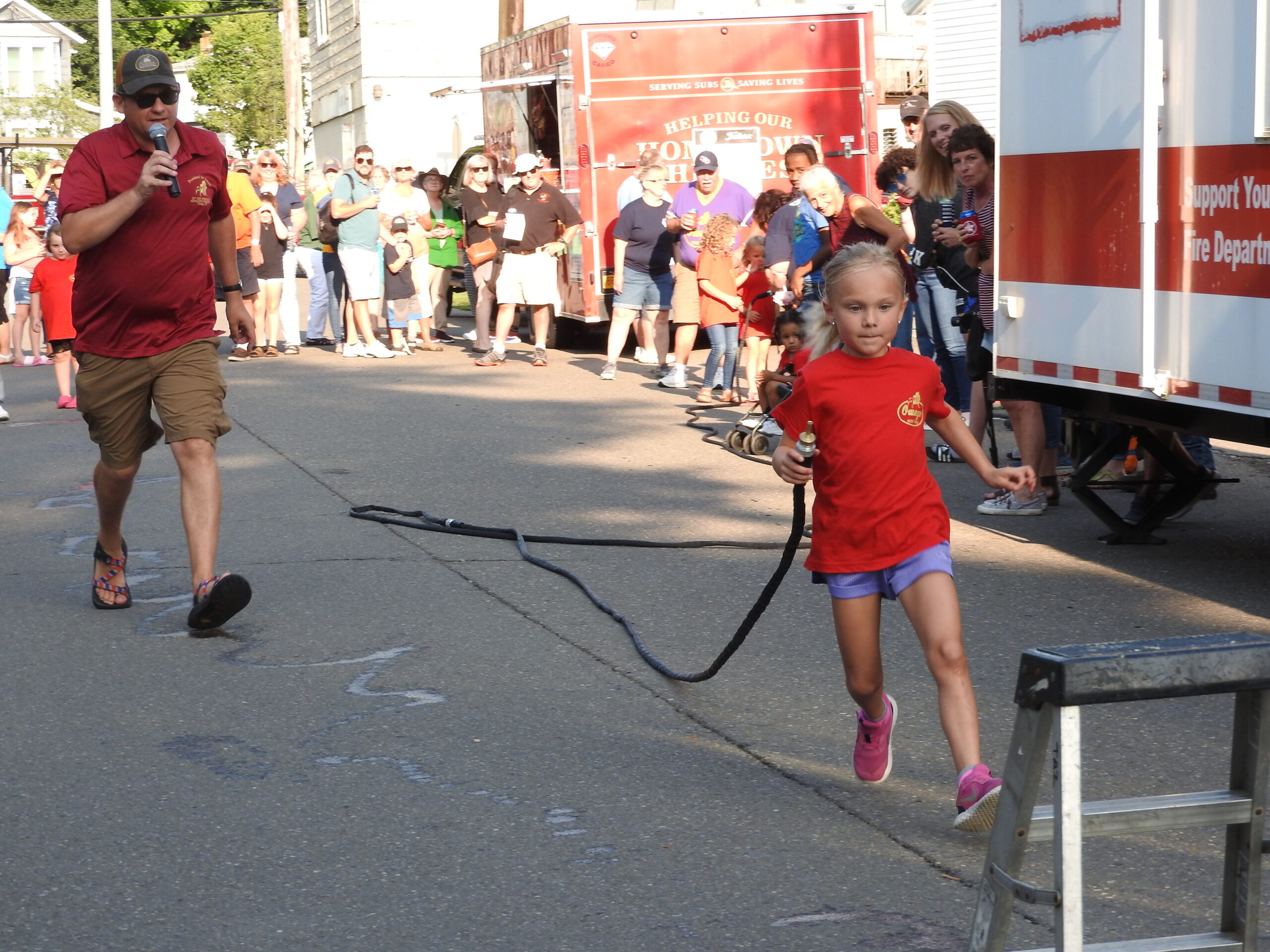Youth practice a little hose racing of their own during Friday Night’s Block Party, held in The Flats in Owego. (Photo by Wendy Post)