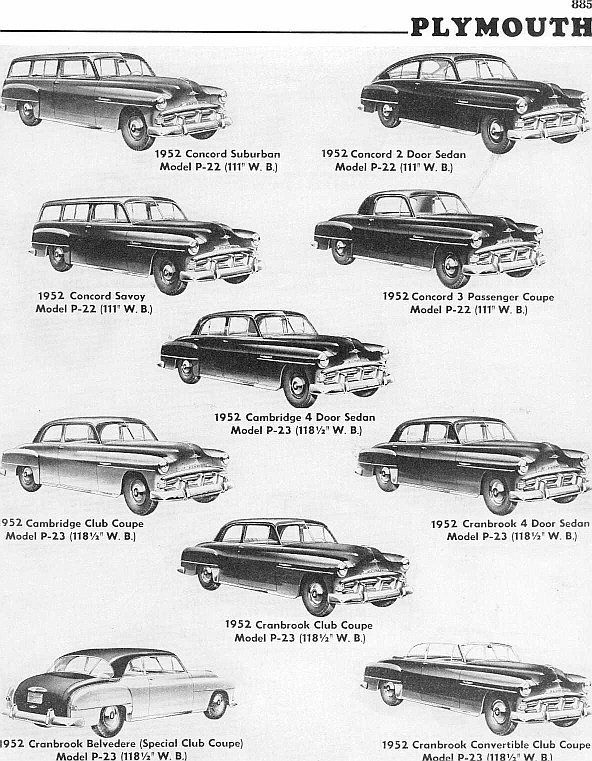 In 1952 Plymouth offered three trims, including a smaller Concord and larger Cambridge and Cranbrook models. Plymouth dropped the smaller Concord trim for 1953. (Compliments Fiat Chrysler)