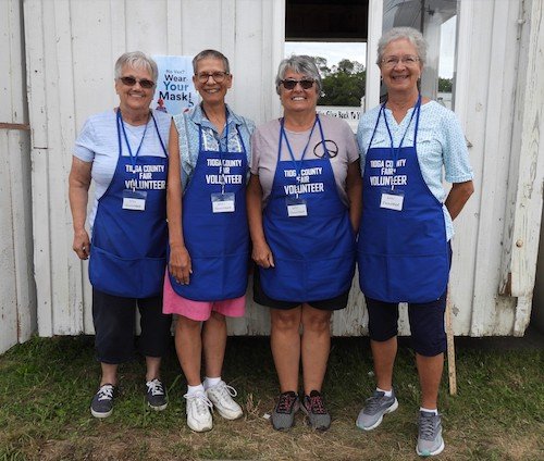 From left, Donna Diles, Annie Mott, Robin Kwiatkowski and Patty Snowden, volunteers at the Tioga County Fair, pose at the Elm Street entrance on Aug. 14. (JoAnn R. Walter Photo)
