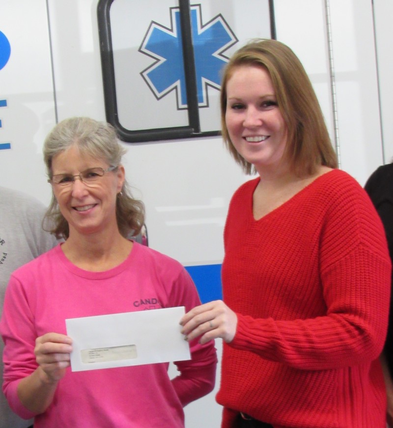On Wednesday, Oct. 20, Tioga United Way presented the Candor Emergency Squad with a matching grant of $10,000 at the squad’s building in Candor. Meredith Sagor, executive director of Tioga United Way, presented Squad Captain Kelly Starkweather with the check. The community, through a yearlong fundraising effort, led by the Candor Chamber of Commerce, was able to match the grant.