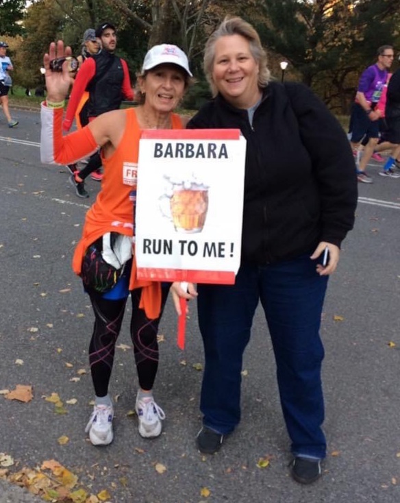 Barbara said she hopes for a clear day on Nov. 7, with an ideal temperature of about 50 degrees. She recalled past marathons when it felt like summer instead of November, and then in 1997, while running with her son, torrential downpours inundated that race for some 20 miles.
