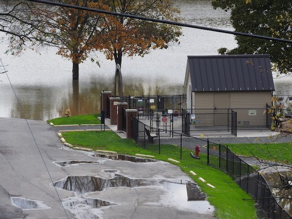 Water inundated the Rebecca Weitsman Memorial Dog Park during last week’s rain event. Fortunately, there was no significant damage noted on Thursday. (Photo by Wendy Post)