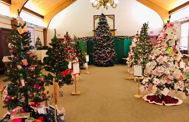 The annual fundraiser is sponsored by the community businesses, citizens, and not-for-profits decorate for the season with their beautiful and unique brand of tree ornaments, wreaths, paintings, wood carvings, and baskets full of everything from wines to toys for guests to bid on through a silent auction.