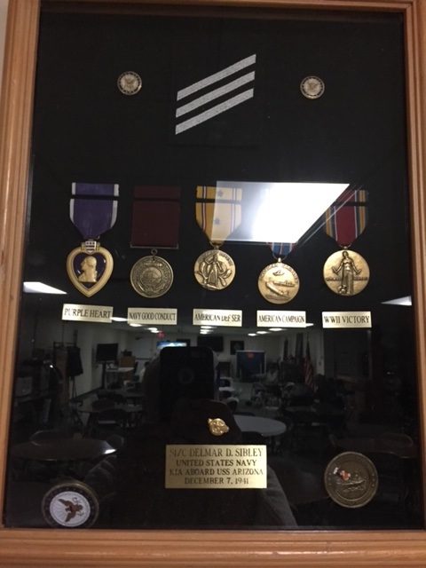 The Pearl Harbor VFW dedication ceremony held in 2007 remembered Owego and Tioga County’s first WWII casualty, Delmar Dale Sibley. And although the September 2011 flooding severely damaged the dining area where Sibley’s wall portrait found floating in floodwater, his shadow box of medals has since been restored.