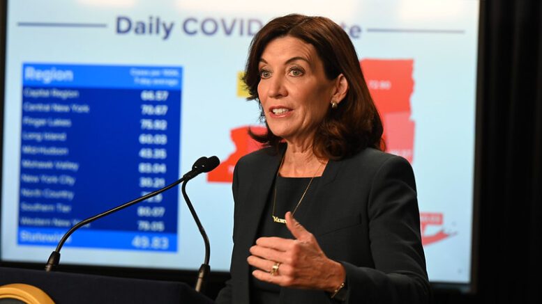 “As Governor, my two top priorities are to protect the health of New Yorkers and to protect the health of our economy,” Governor Hochul stated in a prepared release, adding, “The temporary measures I am taking today will help accomplish this through the holiday season. We shouldn’t have reached the point where we are confronted with a winter surge, especially with the vaccine at our disposal, and I share many New Yorkers’ frustration that we are not past this pandemic yet.”