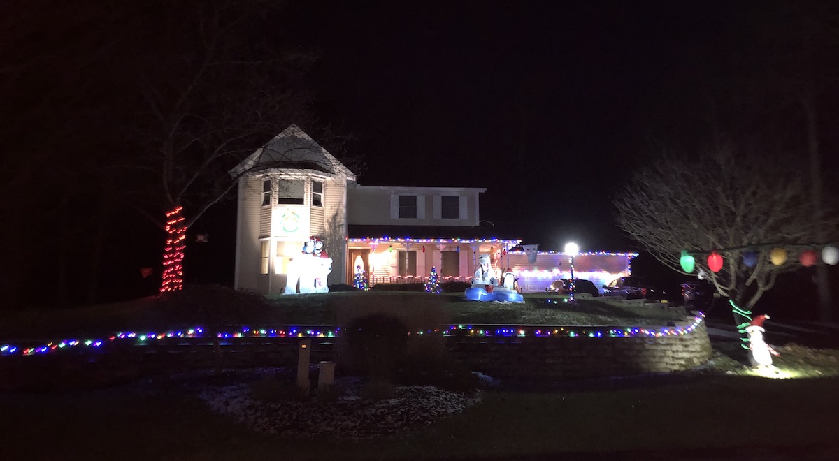 On one popular road, Maryvale Drive in Apalachin, N.Y., almost every house on the road had a spectacular display of lights; some telling a story. On one home, Frozen, the popular animated film featuring Anna and Elsa, was projected on the side of the home and as lights from surrounding displays illuminated the journey uphill and through the display.