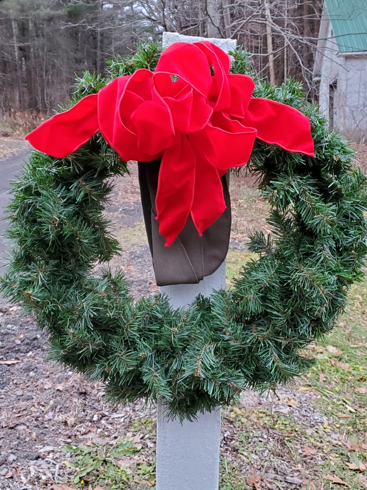 A wreath is placed at the veterans’ memorial stone in front of the Richford Congregational Church. Provided photo.