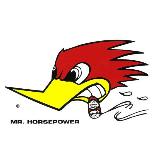 Dale Creveling applied a Clay Smith Cams decal to the sides of his hot ’56 Plymouth. Similar in some ways to the 1968 Road Runner, it is actually the decal that to this day is popular and is known as “Mr. Horsepower,” the wacky woodpecker. (Clay Smith Cams)