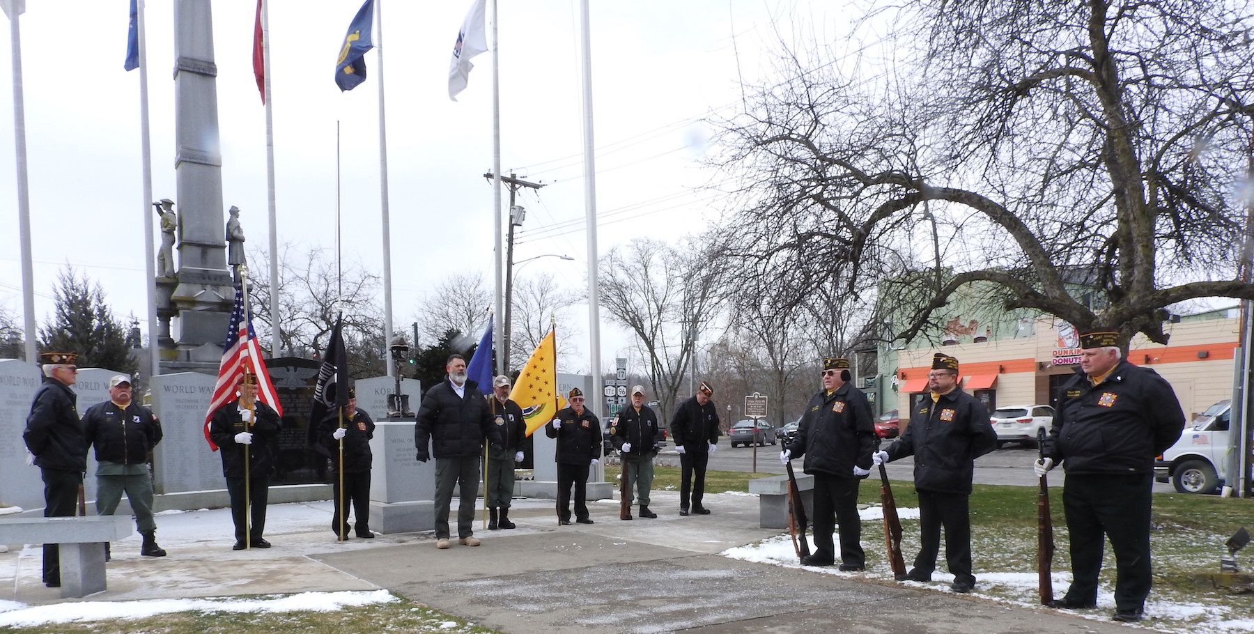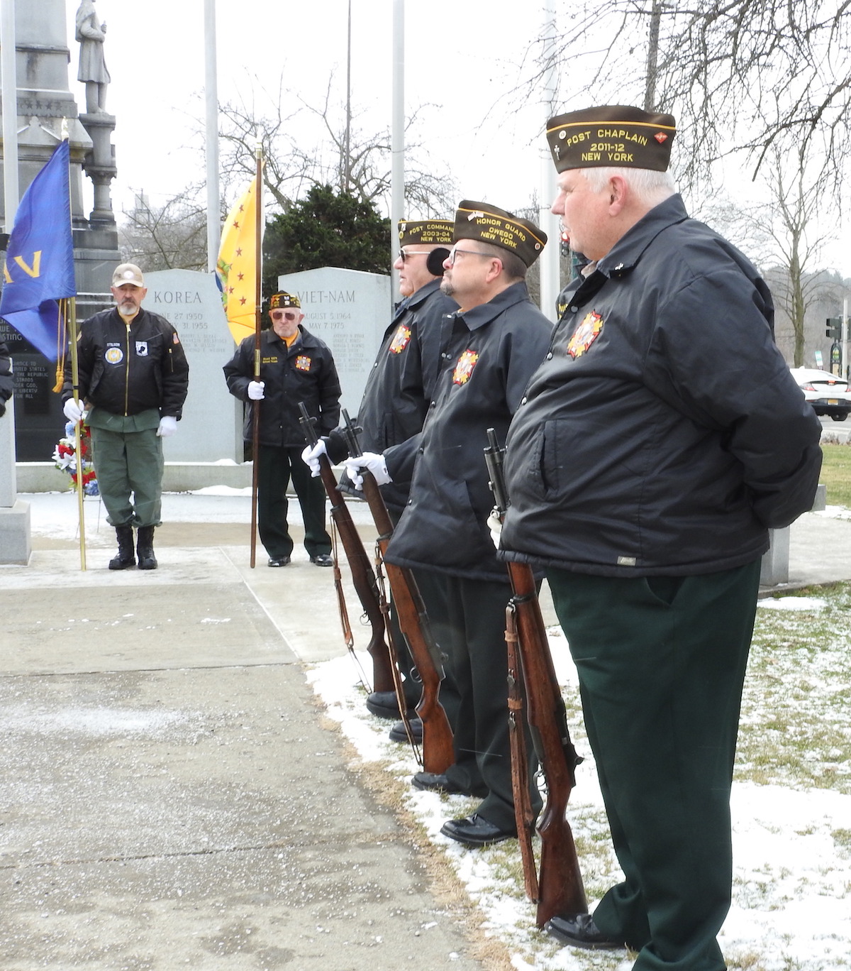Veterans stand at ease during a March 29 ceremony held at the Tioga County’s Veterans Memorial in Owego, a day recognized and observed as Vietnam War Veterans Day. (Photo by Wendy Post)
