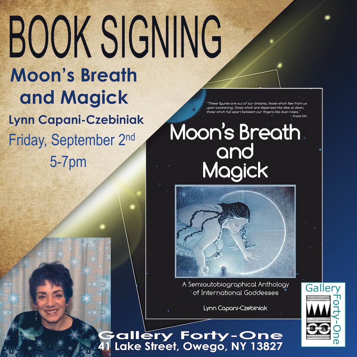 Also joining the gallery for First Friday is artist and author Lynn Capani-Czebiniak who will be signing copies of her newest book, Moon’s Breath and Magick.