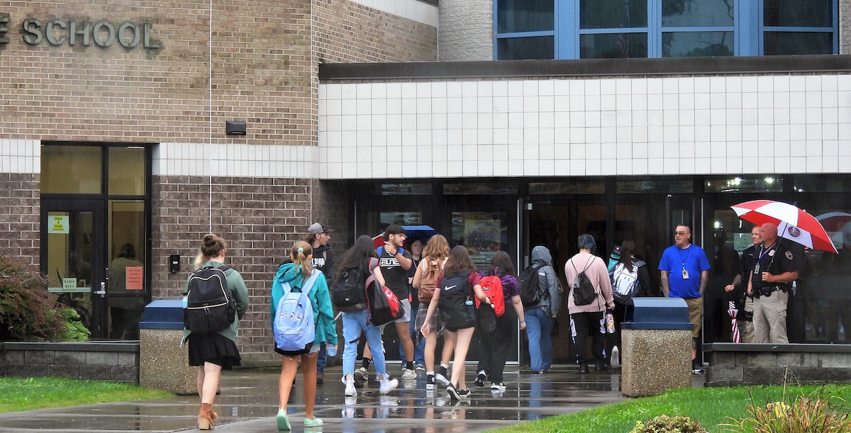Students arrive at Owego Elementary on Sept. 7 for the first day of the new school year. (JoAnn R. Walter Photo)