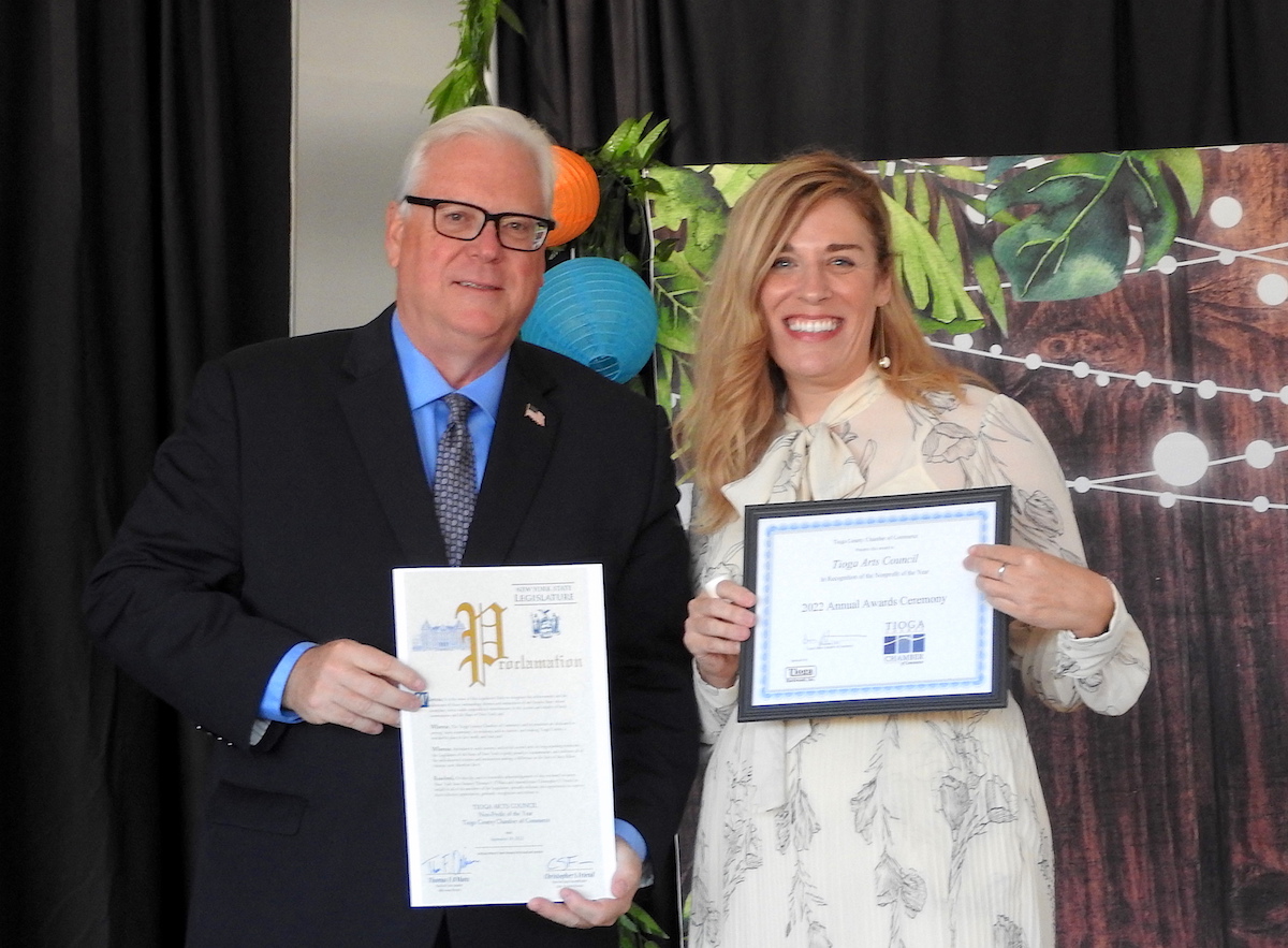 Abbey Ortu, community development specialist for Tioga County’s Economic Development and Planning department, accepted the Non-Profit of the Year Award, sponsored by Tioga Hardwoods, for Christina Di Stefano, executive director for the Tioga Arts Council.