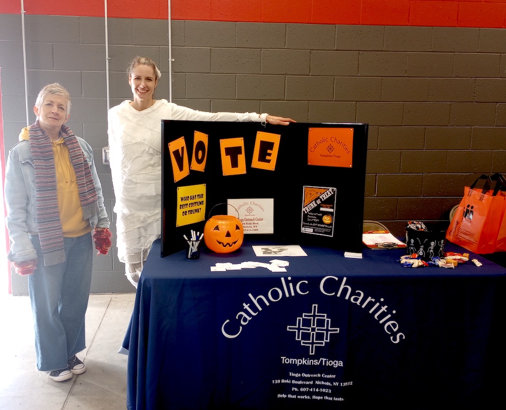 On Saturday, Oct. 29, Catholic Charities of Tompkins Tioga and the Nichols Fire Department teamed up, along with Clear Path for Veterans, to host a Halloween Trunk or Treat for all the children in the community to enjoy. Approximately 200 trick-or-treaters, plus their families, stopped by to show off their costumes, get a bunch of treats, and enjoy some hotdogs and snacks.