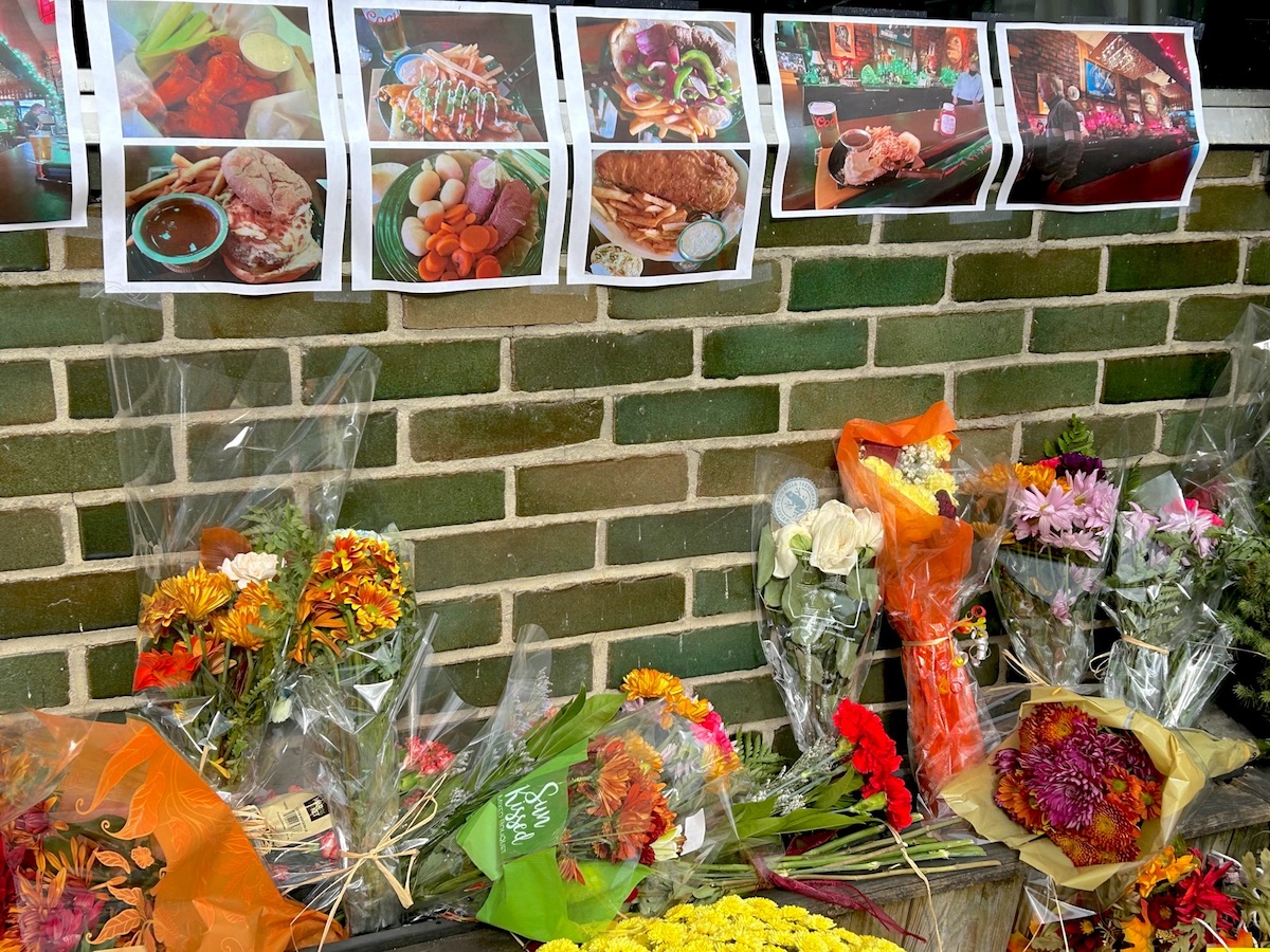 Anonymous donors, in memory of Tom O’Hara of O’Hara’s restaurant, leave flowers at the restaurant’s entrance. O’Hara passed away on Nov. 2. The restaurant, located at 191 Main St. in Owego, was a go-to for many. Many remember Tom’s excellent food, good conversation, and a welcoming atmosphere. (Photo by Wendy Post)