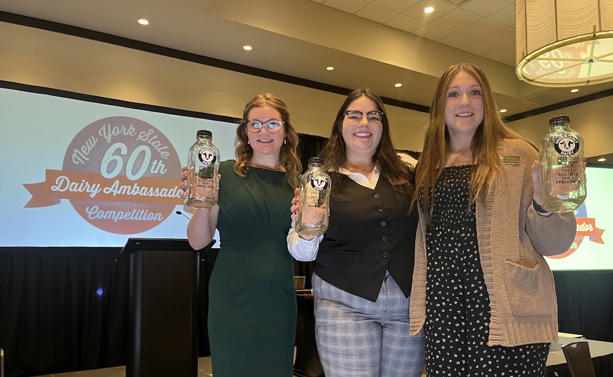 Pictured, from left, are New York State Second Associate Dairy Ambassador Isabella Esposito (Onondaga County), New York State Dairy Ambassador Arianna Aman (Tioga County), and New York State First Associate Dairy Ambassador Elyza Schoeberl (Otsego County). Provided photo.