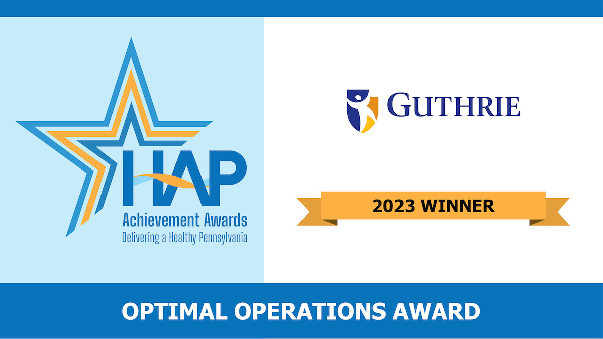 Guthrie represented two of the 12 winning projects, selected from a group of 82 total submissions, and was awarded the Optimal Operations Award for implementing a new team-based approach to nursing to reduce staff turnover and vacancies, improve patient and staff satisfaction, and improve quality and the In Safe Hands Award for implementing new procedures to reduce hospital-acquired infections.