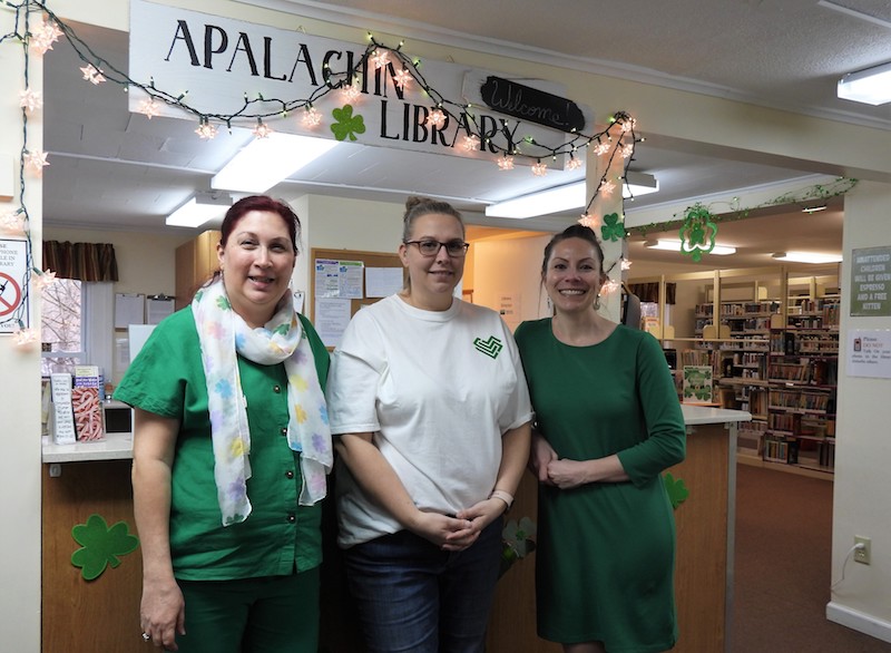 From left, Library Assistant Wendy, Library Clerk Missy, and Library Director Tracy Savard pose inside the front entrance to the Apalachin Library. Not pictured are Library Assistants Vanessa and Jaime. The library is a go-to for books and resources, inter-library loans, computer and meeting room use, engaging activities, special events, and more. For additional information, call the library at (607) 625-3333, find them on Facebook, or visit www.apalachinlibrary.org. (JoAnn R. Walter Photo)