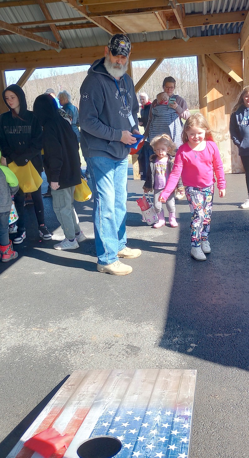 Michael Middaugh, from the Tioga County Veterans’ Service Agency, helps out with the cornhole toss. Provided photo.