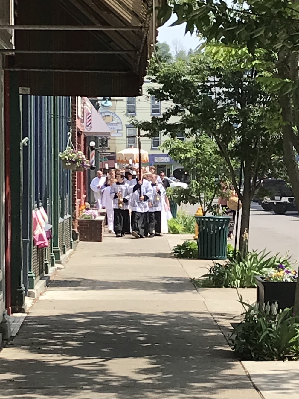 If you found yourself in the village of Owego this past Sunday afternoon, June 11, you may have seen a curious sight. Over 100 Catholics from Tioga County and beyond gathered at St. Patrick’s Catholic Church on Main Street to celebrate this gift. From the Church they went “into the city” in a solemn procession, with song and incense and joy.