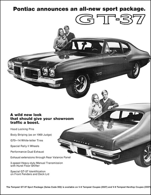 Advertisement for the powerful 1970 Pontiac GT-37, which were stripped down GTOs with optional Ram Air III GTO engines. (Pontiac)