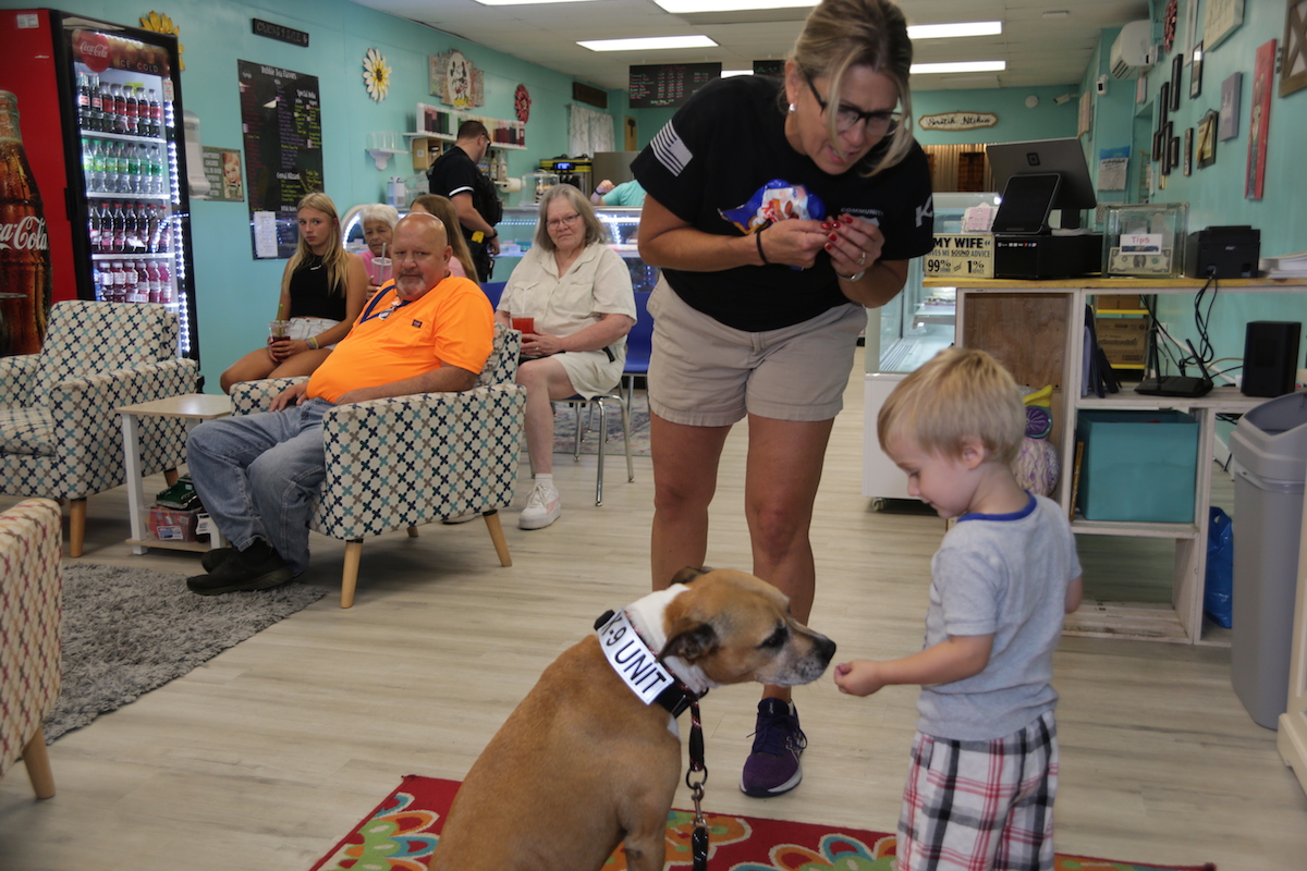 Local Author Sonya Bement read the book she has written about her rescue dog Maxie, and how they came to meet, and Maxie’s journey to becoming a certified Critical Incident Therapy Dog.