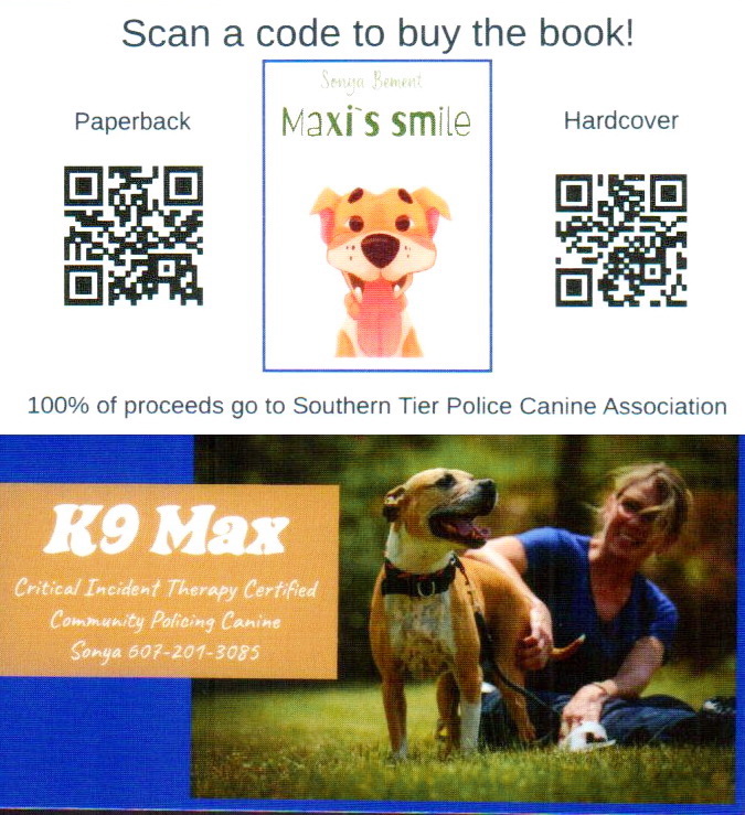 Bement and Maxie both “signed” the books purchased. All proceeds benefit the Southern Tier Police Canine Association.