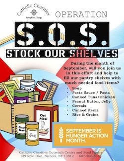 The month of September is Hunger Action Month, with the national campaign focusing on access to nutritious foods for all people and ending hunger for those suffering with food insecurities. In Tioga County, N.Y., over 11% of the population is facing poverty (according to census.gov and their 2021 reporting). CCTT is running their own Operation S.O.S. (Stock Our Shelves) campaign to assist with keeping essential food items on hand in their pantry.