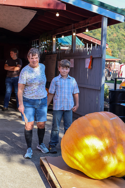 Pictured is the first prizewinner and first pumpkin of the afternoon to be auctioned, Wyatt Zorn, with his enormous 554 lb. pumpkin. (Photo by Kenneth J. Waterhouse)