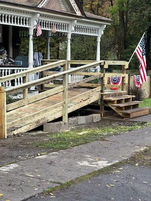 An Owego resident that has found himself with some new challenges is getting by with a little help from his friends. On Saturday, Oct. 7, and in the rain, about half a dozen members of the Punishers Apalachin New York Chapter (PANYC) arrived to build a handicapped ramp for Kevin Miller, an Owego resident that had his leg amputated after infection set in.